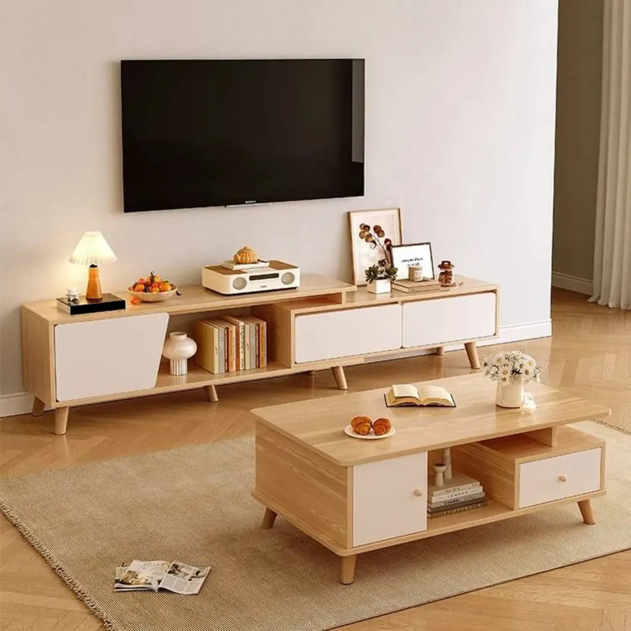 78.7 Natural Wood Open Storage Drawers TV Stand with Legs