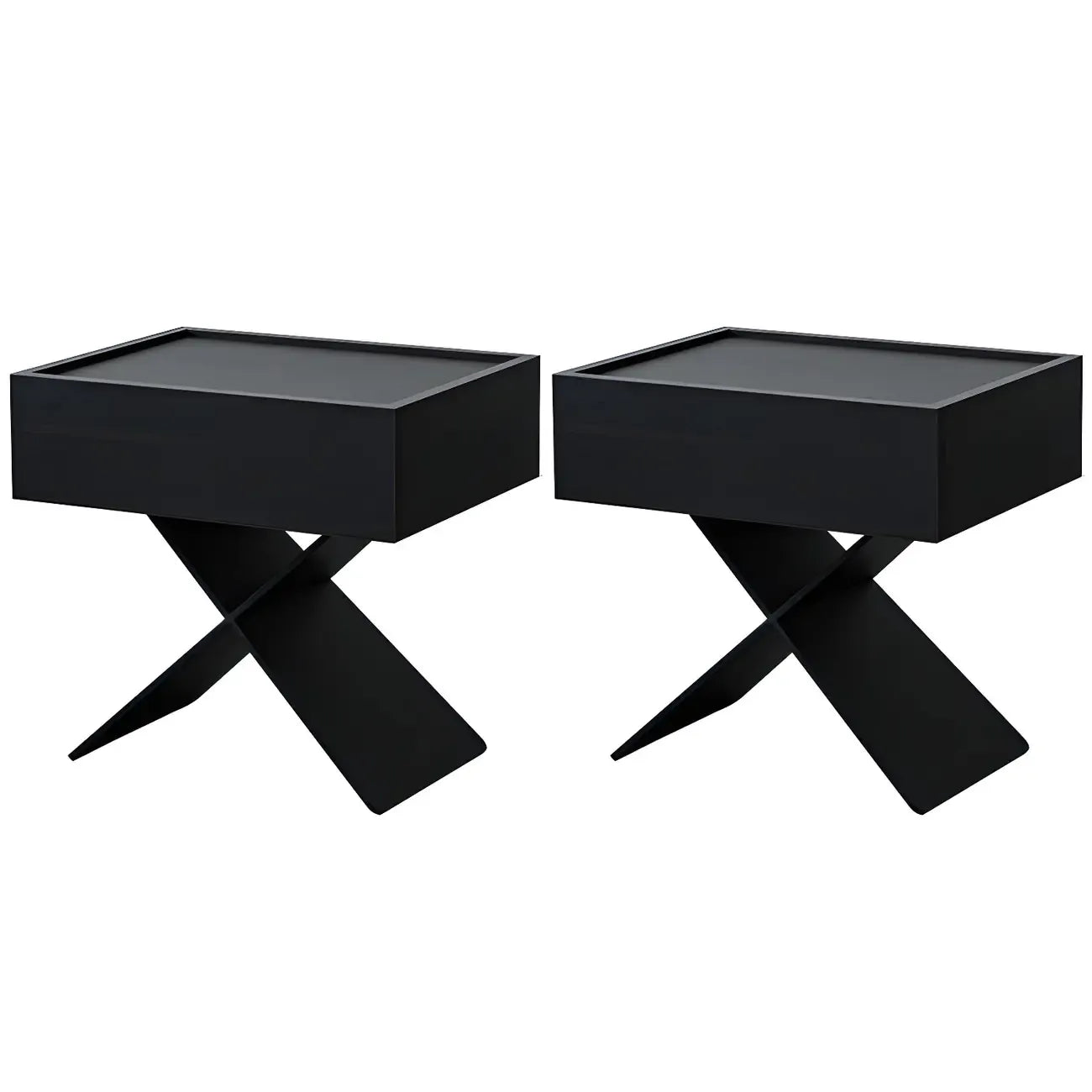 Black Wood X-Leg Drawer Storage Small Nightstand