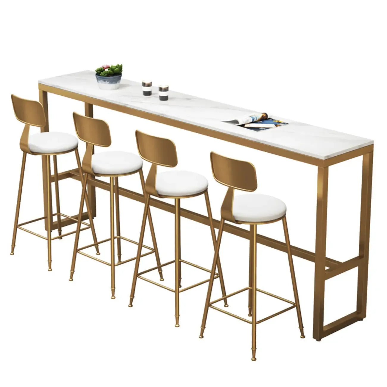 Elegant Faux Marble Bar Table Set with Upholstered Chairs