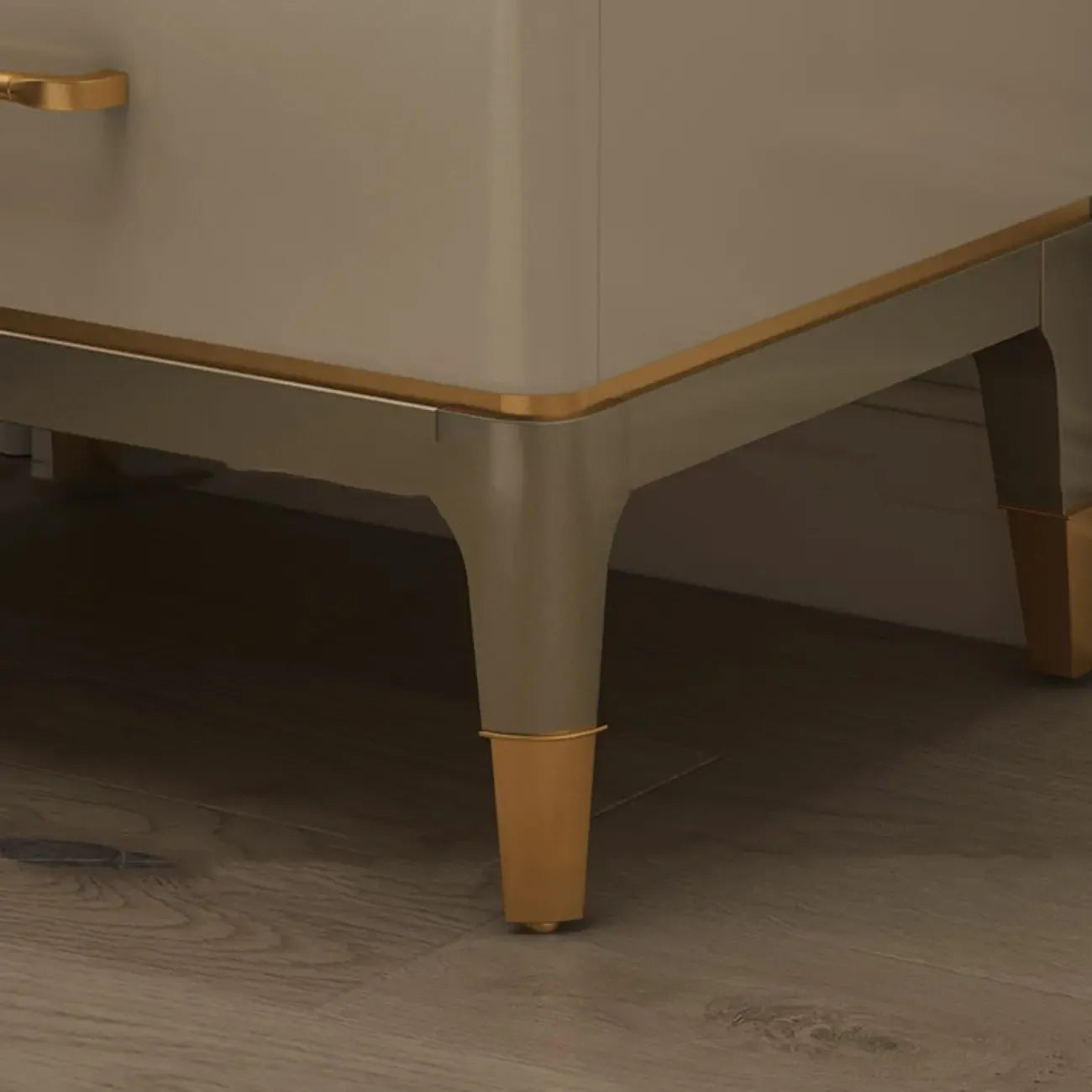 Glam Gold White Metallic Top 2-Drawer Nightstand