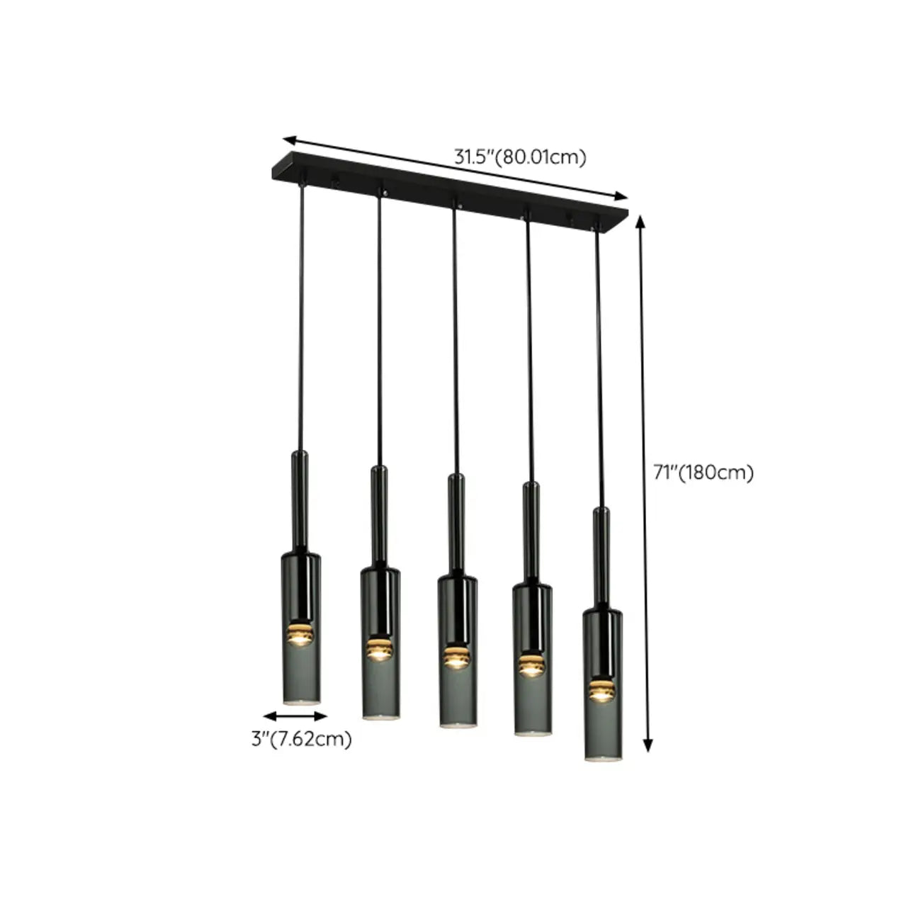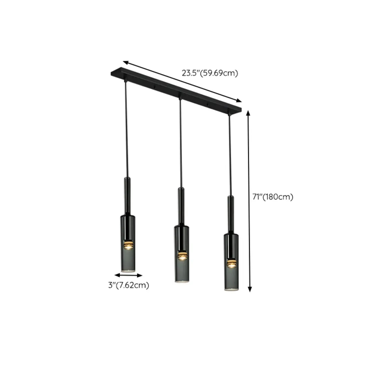 Glass Island Pendant Light Cylindrical Shape in Grey for Kitchen