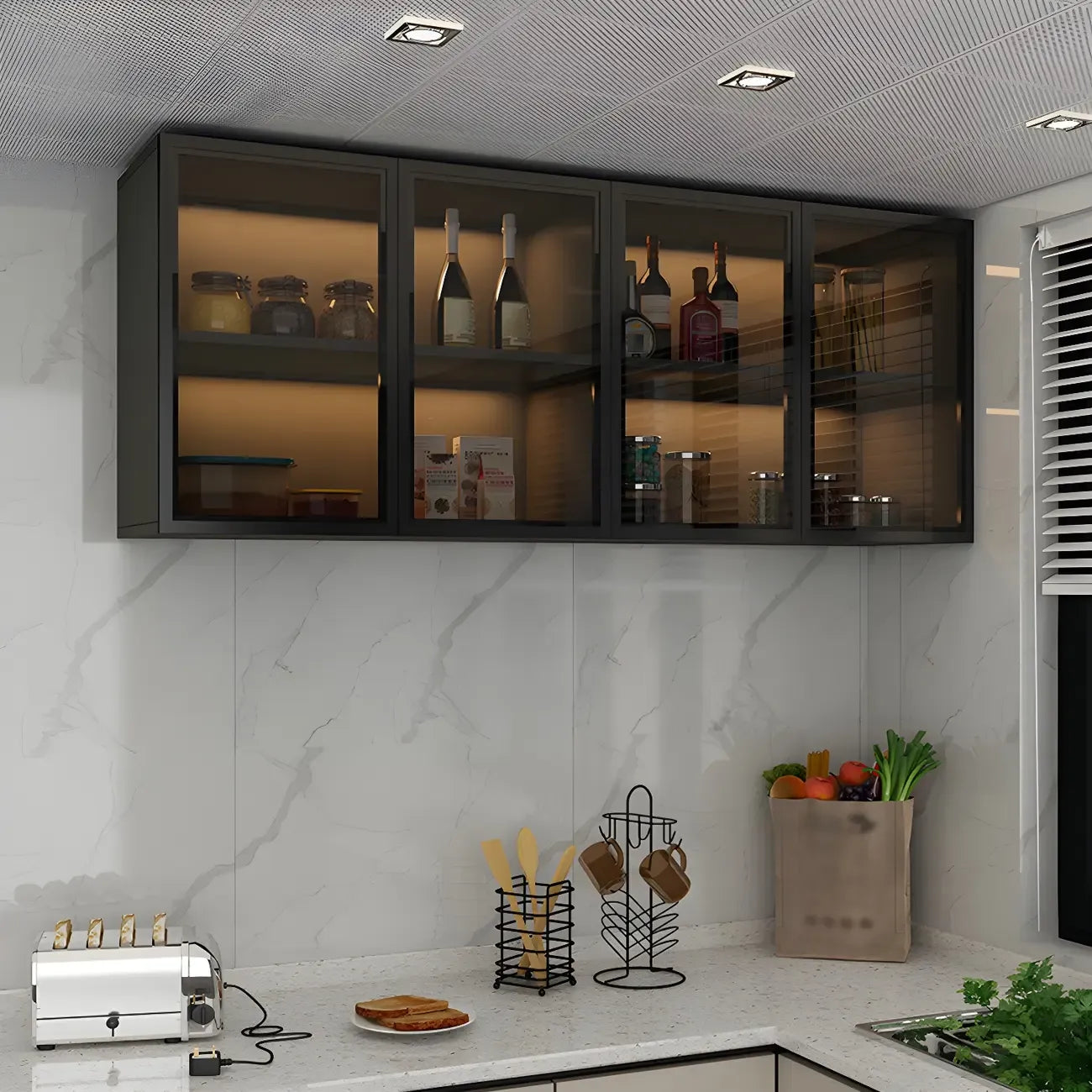 Grey Wood Floating Mount Glass Dooor Kitchen China Cabinet