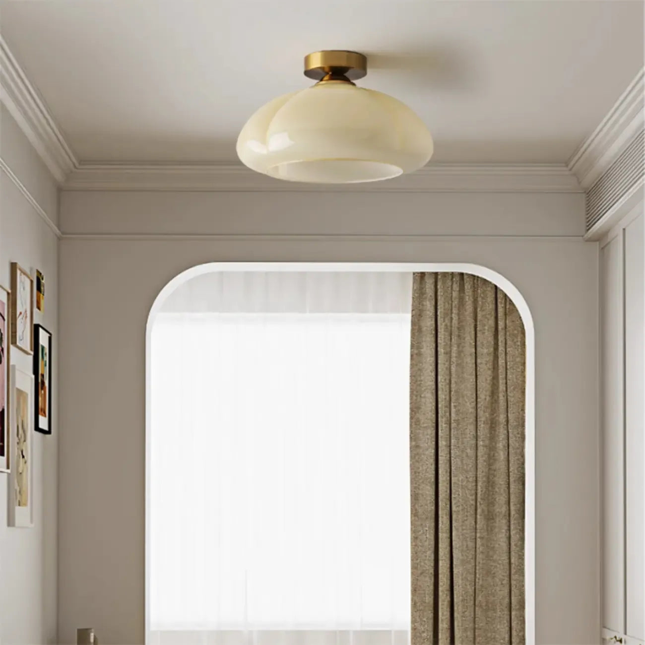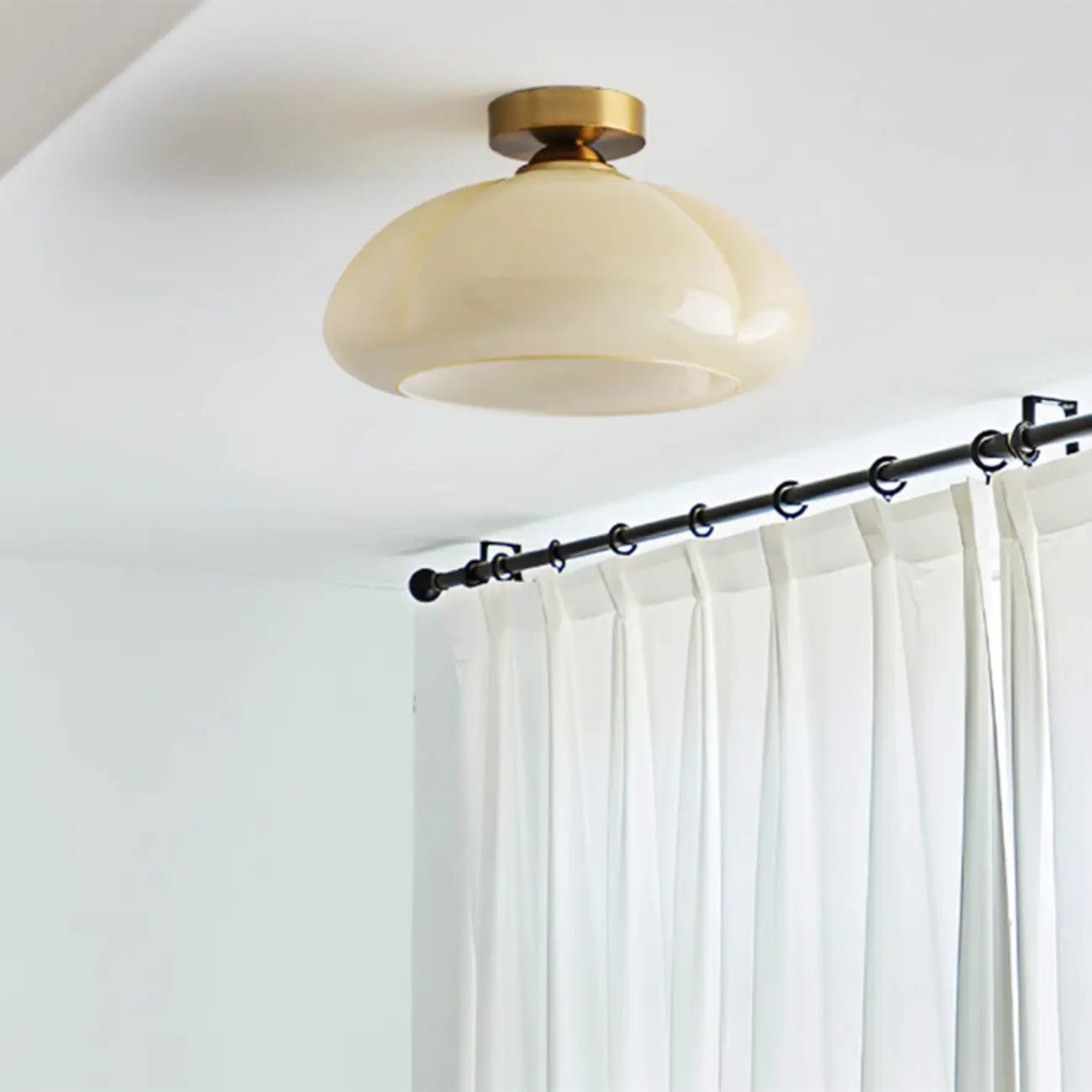 Mini Simplistic Milky Yellow Glass Dome Semi Flush Ceiling Light
