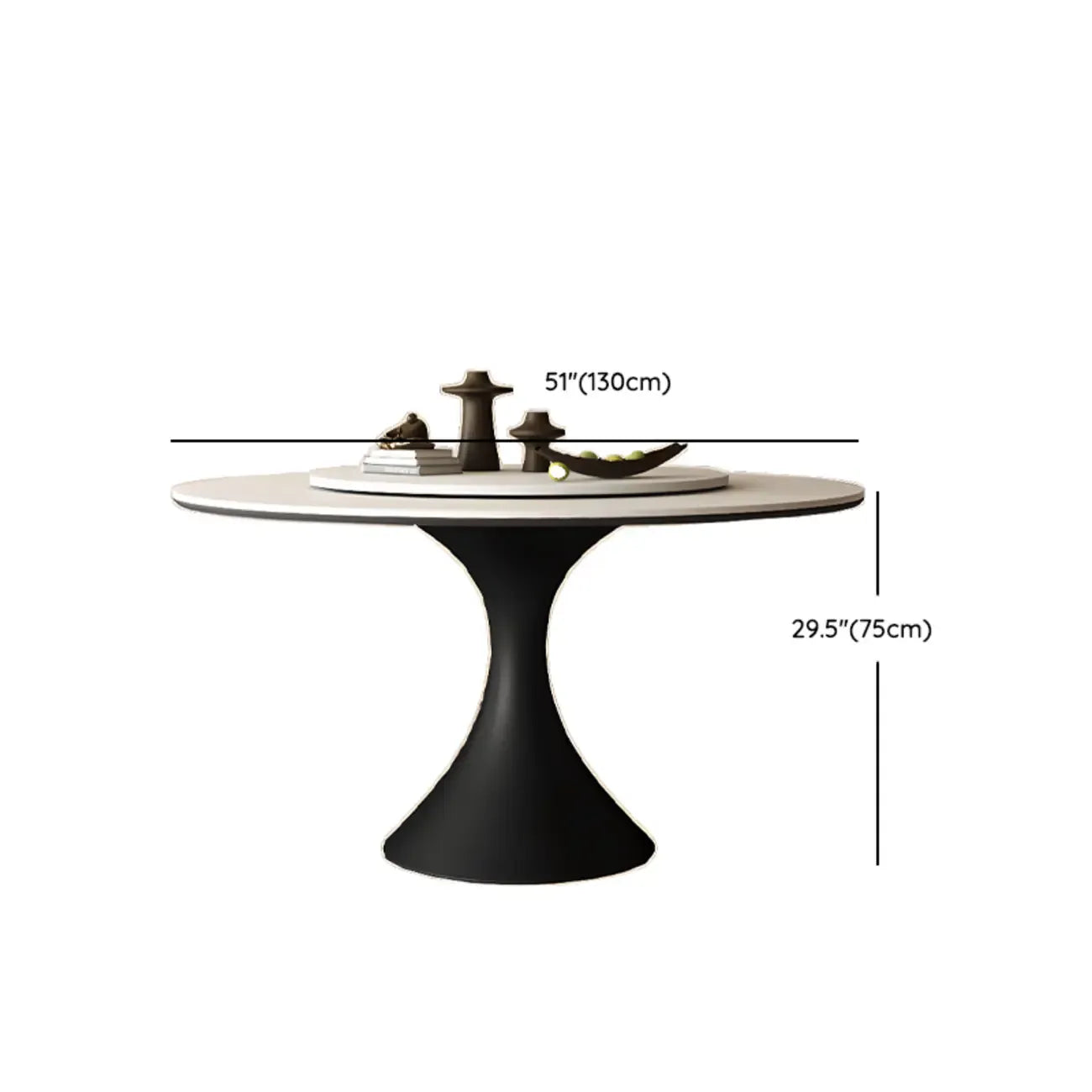 Modern Black Pedestal White Stone Top Round Dining Table