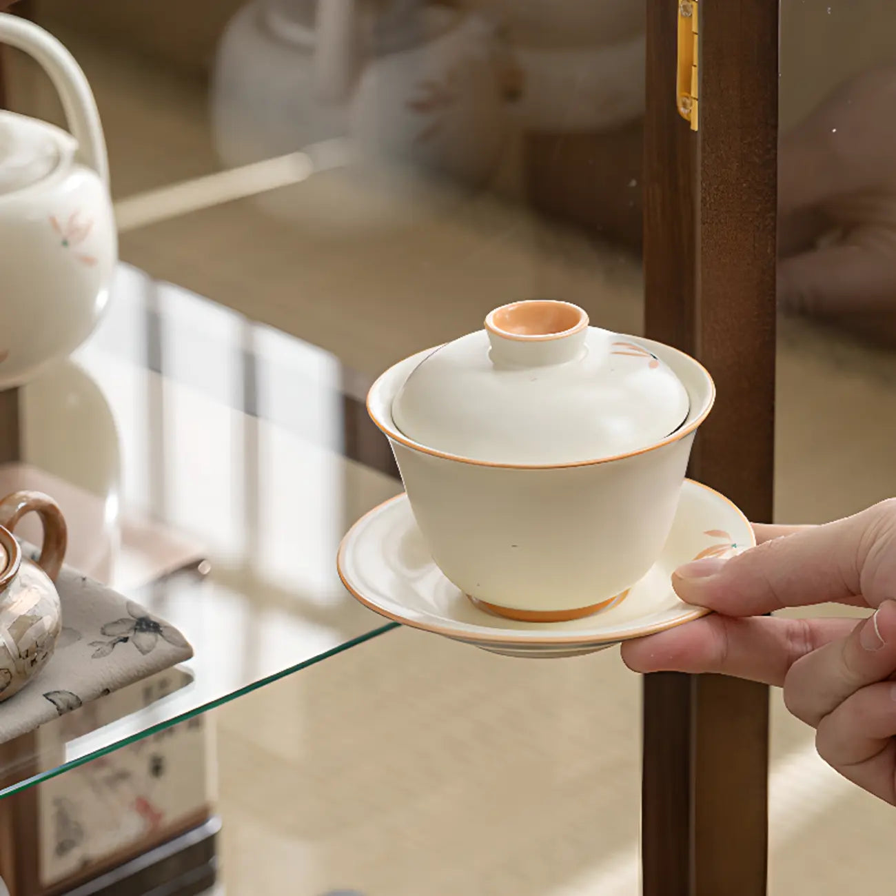 Modern Brown Wood Curio Cabinet with Glass Shelves
