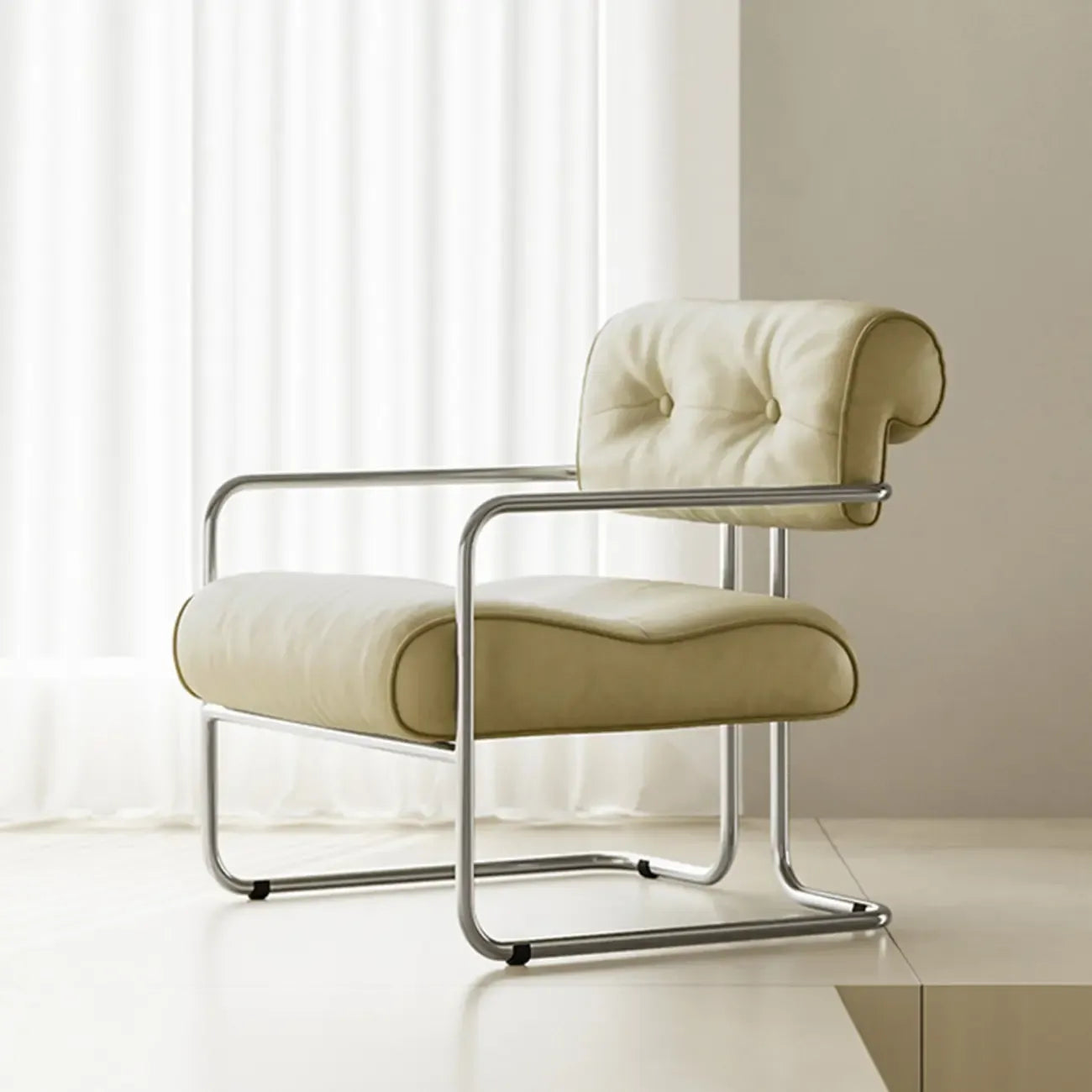 Modern Nappa Leather Solid Color Accent Chair with Arms