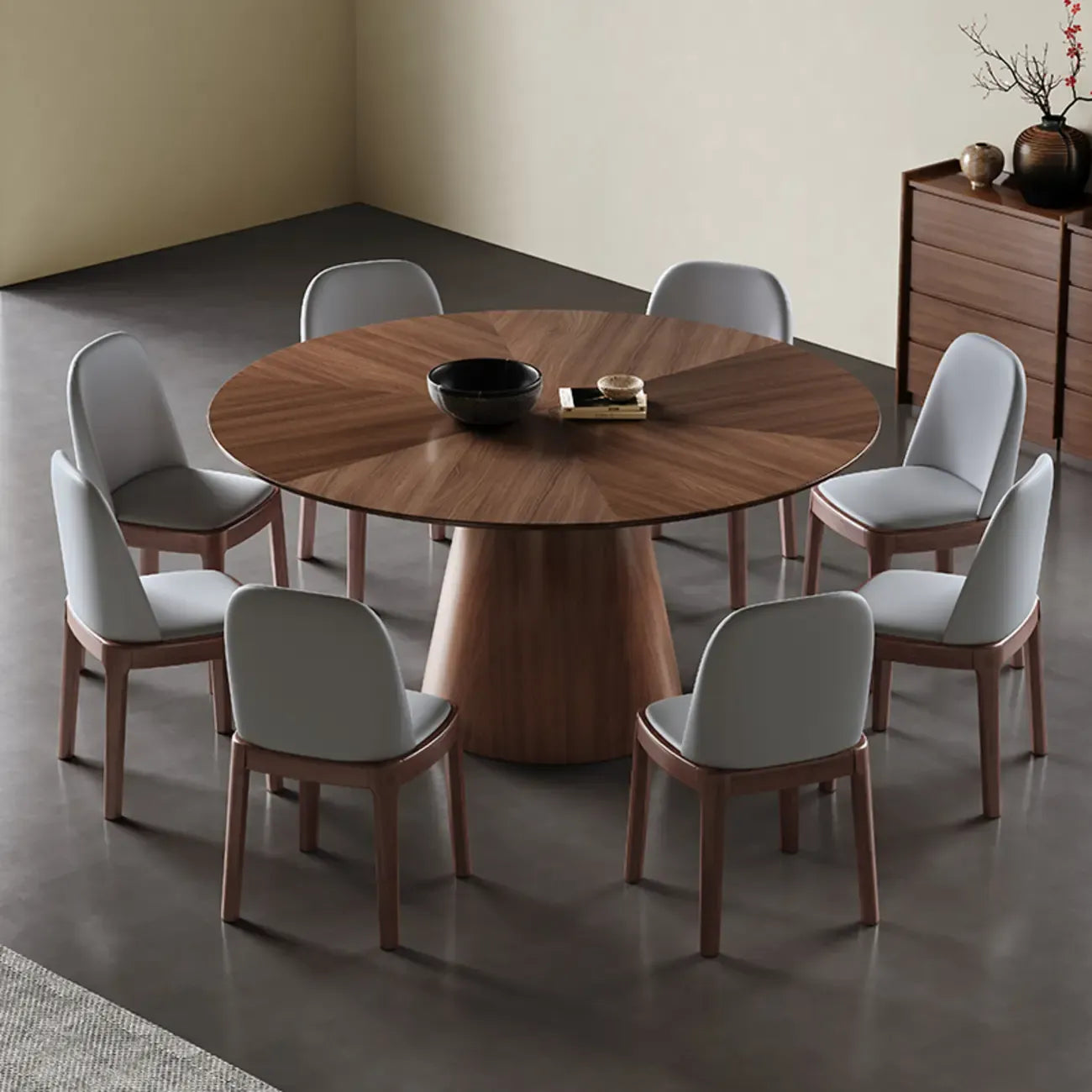 Modern Simple Round Walnut-Brown Wood Dining Table