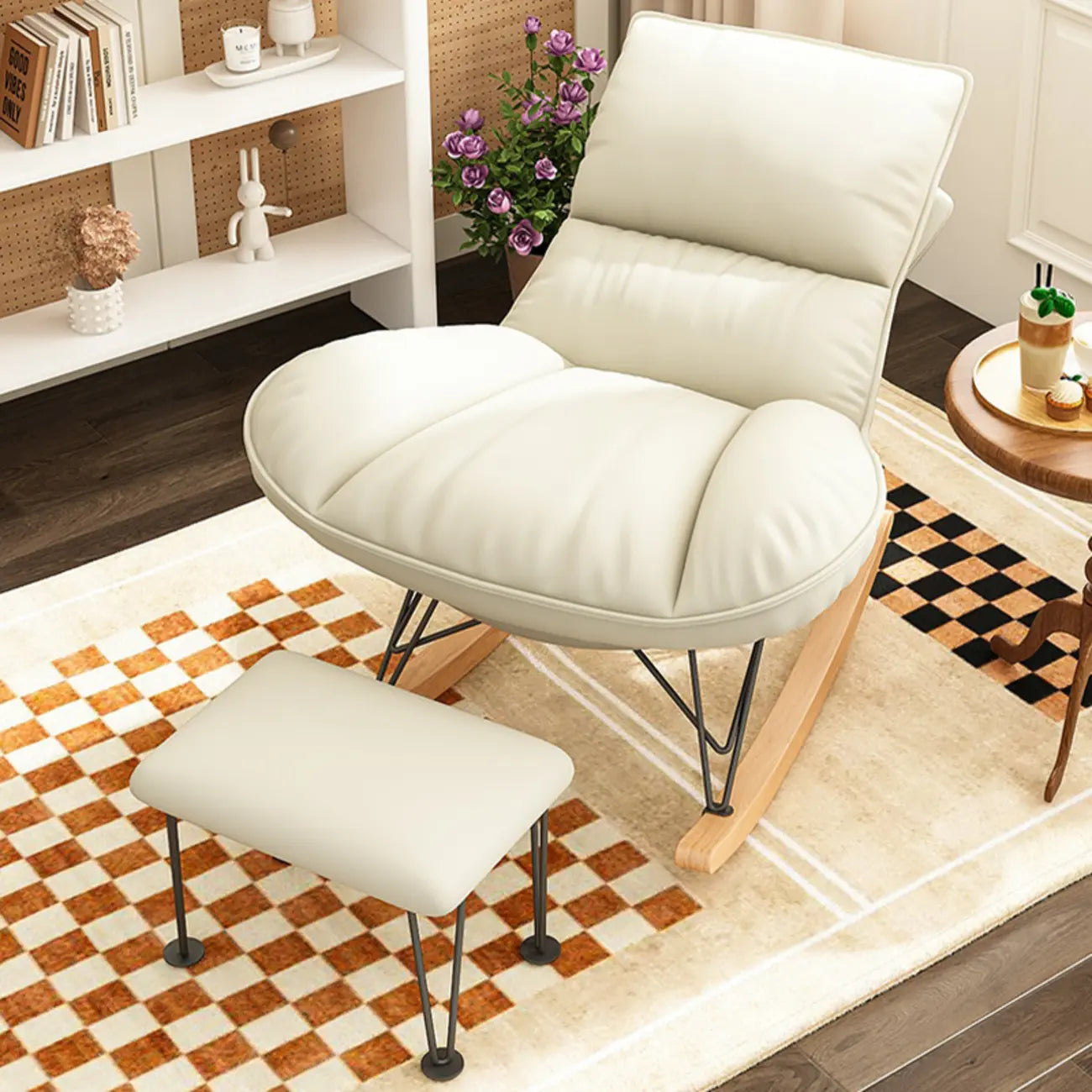 Natural Wood Upholstered Rocking Chair with Ottoman in White