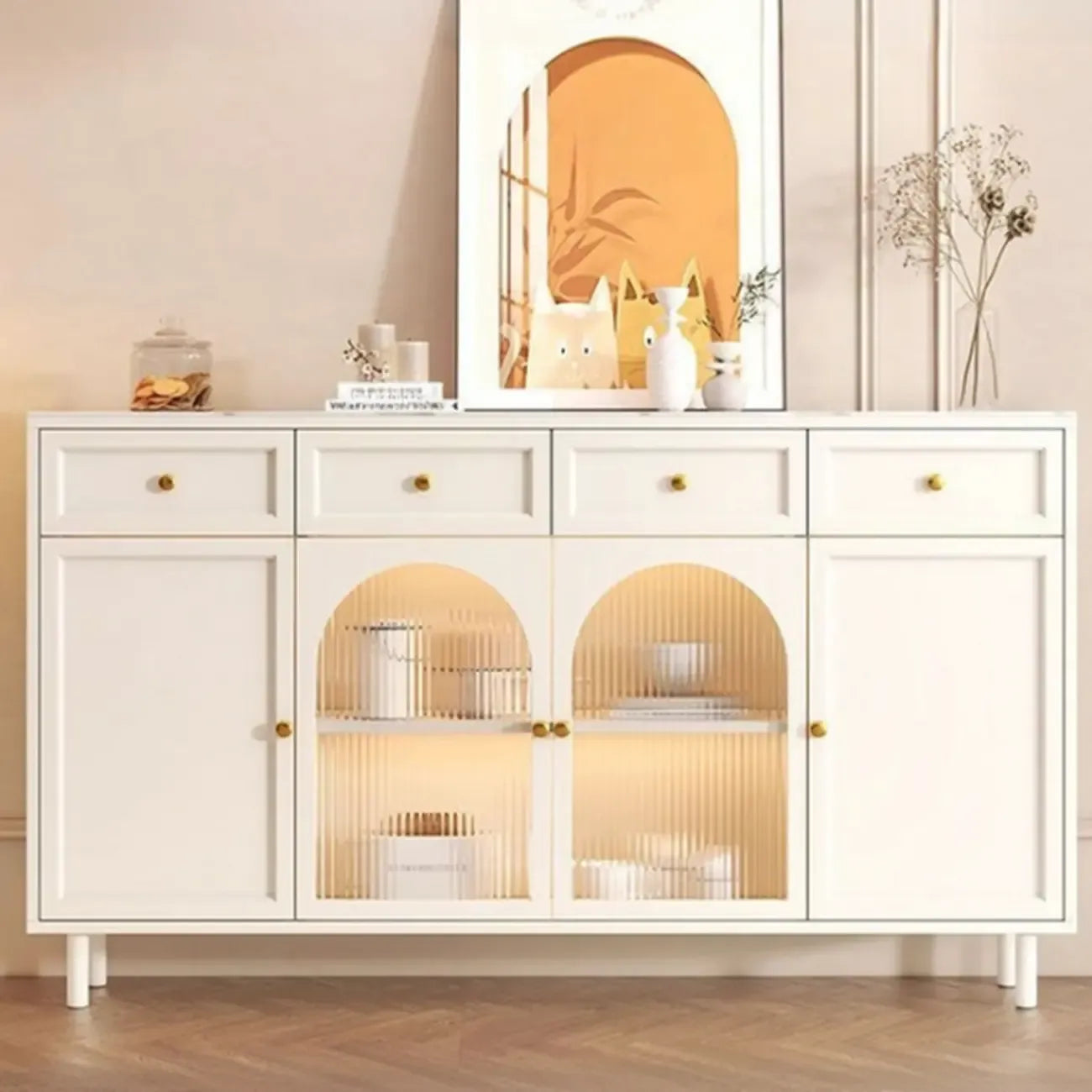 Thanks to its versatile design, the cabinet helps organize and display your essentials.