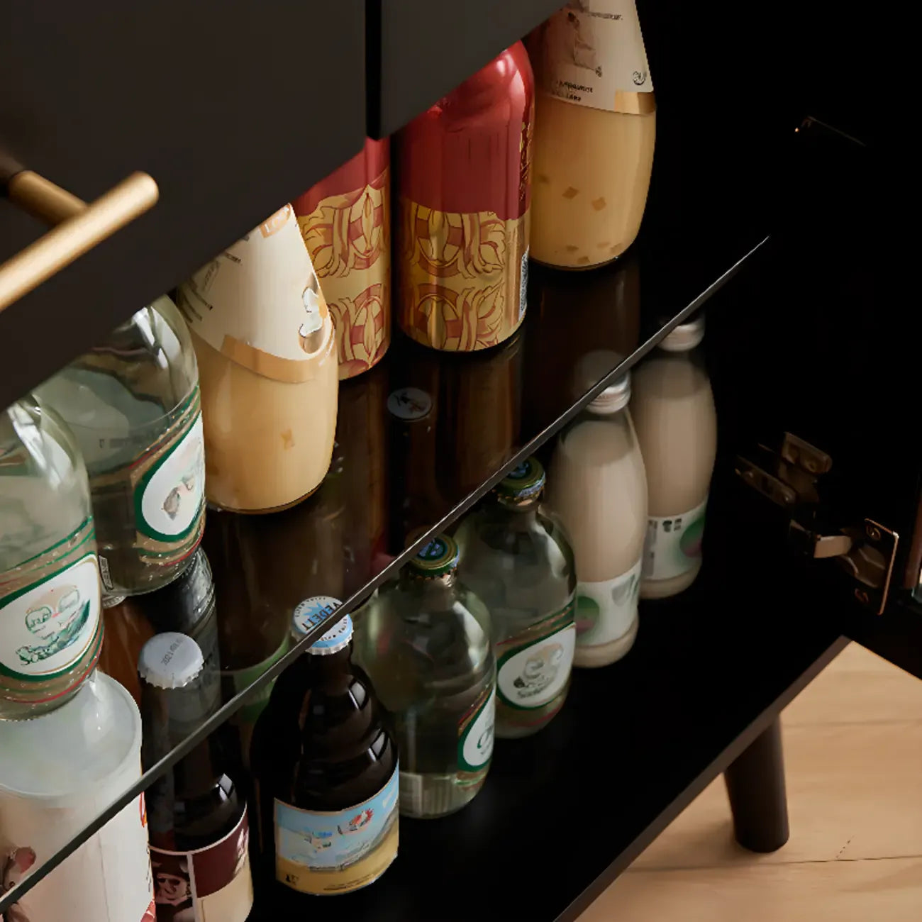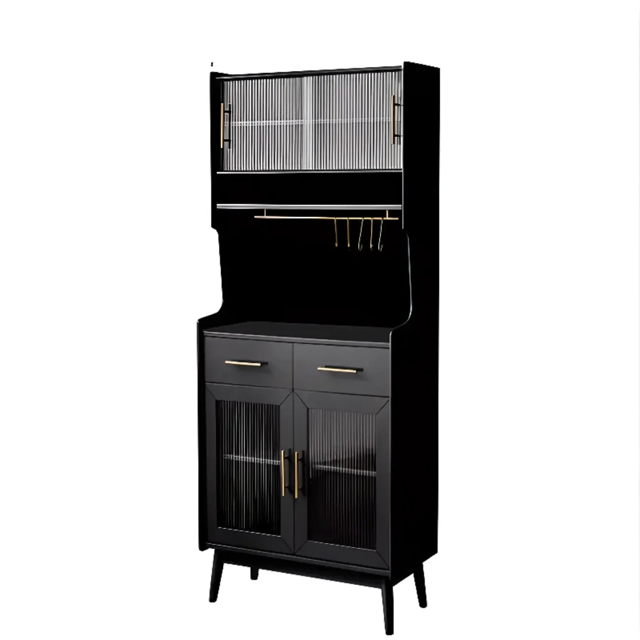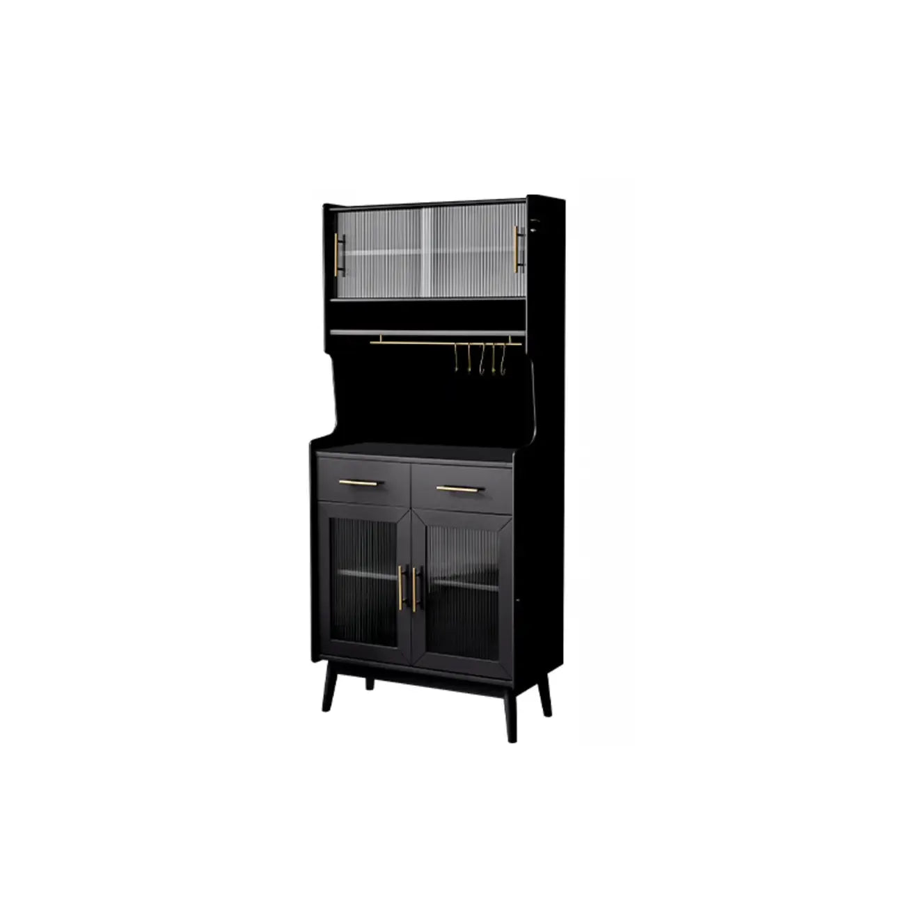 Tall Wooden Black Glass Doors Kitchen Sideboards