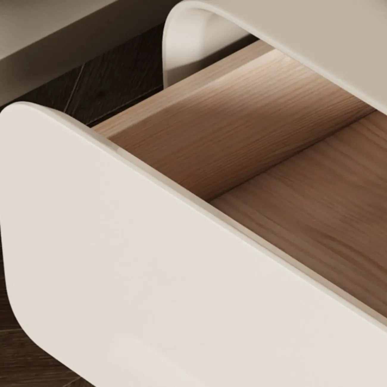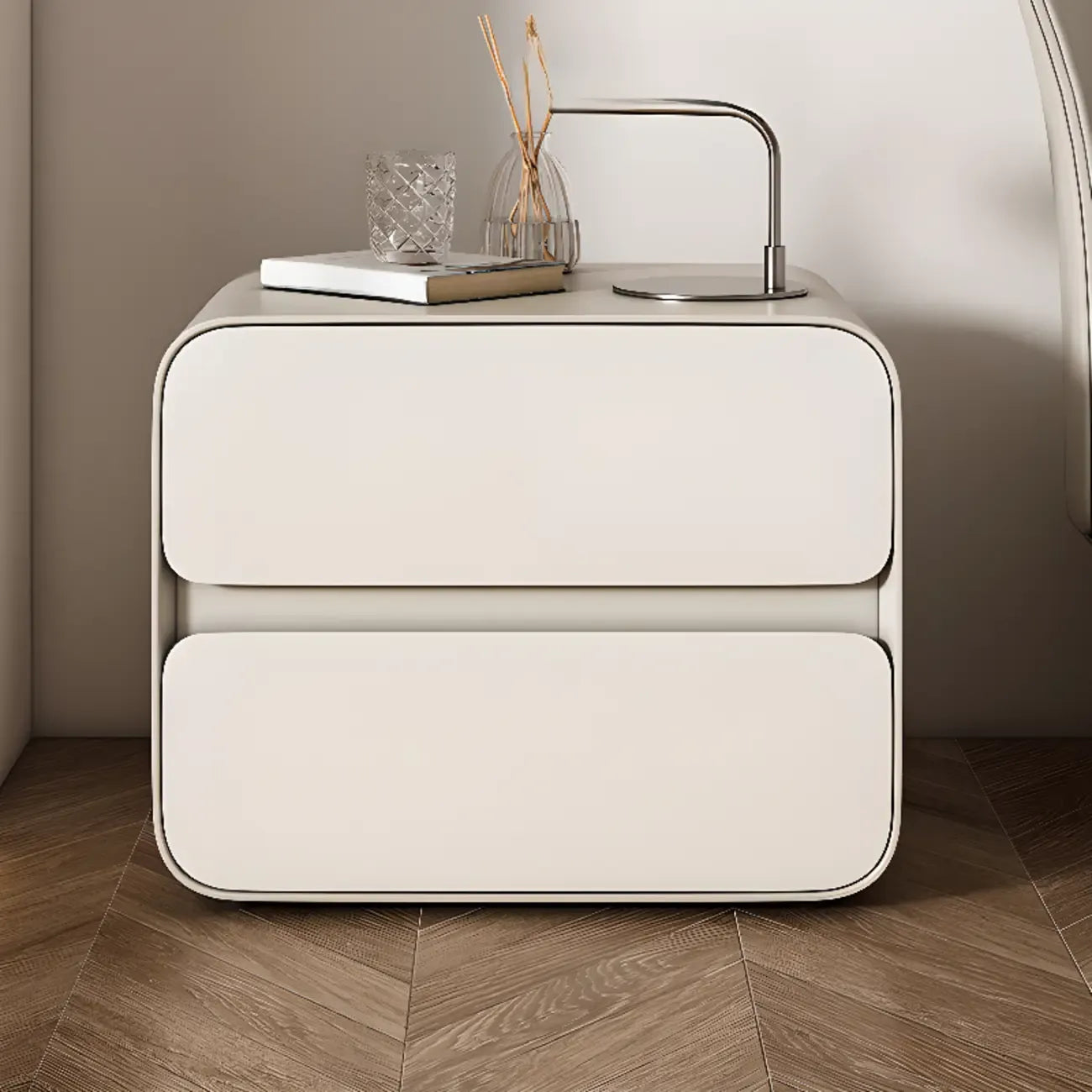 White Art Deco Faux Leather Top Storage Nightstand