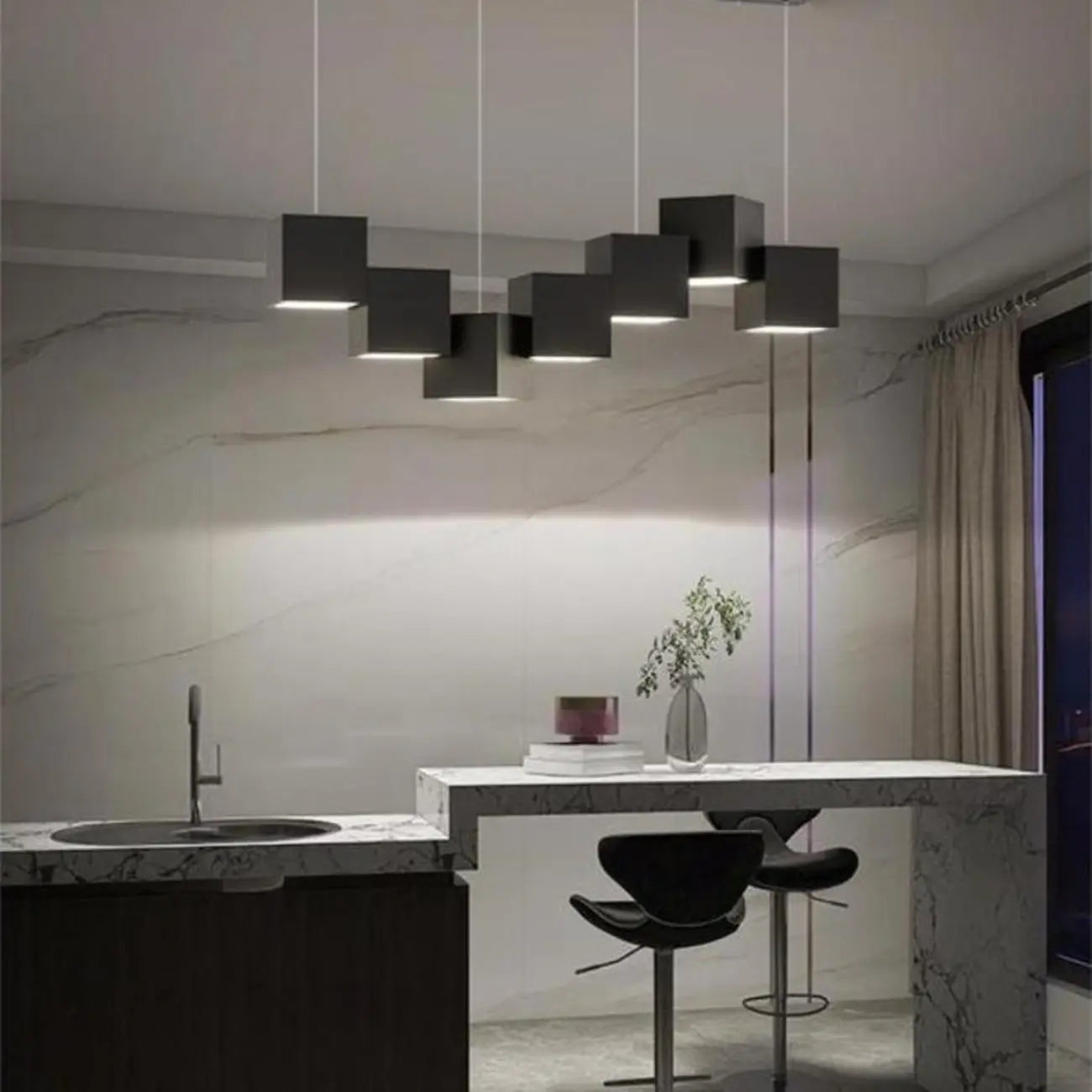White Cube Modern Island Pendant Light, Adjustable